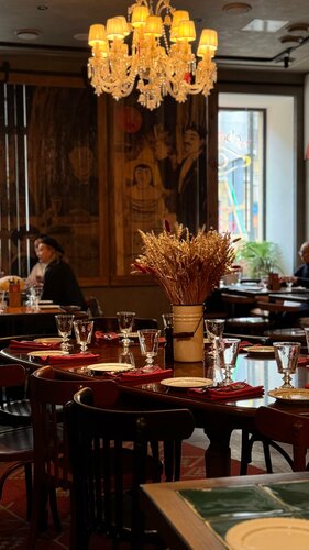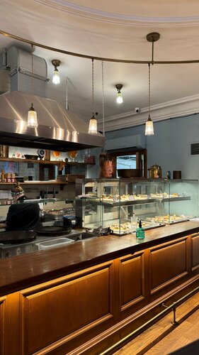 🏠 недавно открылся, впечатляет интерьером, деталями, конечно, это очень красиво, много залов, зал для иммерсивных мероприятий еще делают. Странная входная группа, заходишь и перед тобой что-то готовят, вроде бы тесто и тут же сразу гости раздеваются и сумки ставят… вообще мне это непонятно. Меня никто не встретил, не проводил, на втором этаже ни один сотрудник не поприветствовал 🙎🏼‍♀️хостес с неуместными шуточками, это не друзья все-таки её, а гости ресторана ❌Ни экскурсии по залу, ни тостов, ничего такого интересного не было 🤵🏼‍♀️ красивая форма у официантов, среднее обслуживание 🥨 выпечка вкусная, чай в мини чайнике на 2 чашки хватит от силы и очень сладкий, прям перебор Пока что понравился только интерьер, можно сделать красивые фото, от остального никакого вау впечатления как было заявлено.