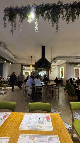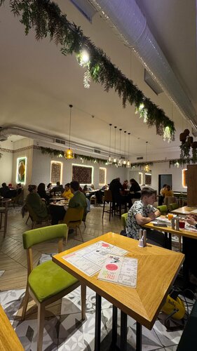 🏠 красивый вид, с левой стороны на улице есть разные беседки, много разных залов, удобство бронирования на сайте, живая музыка 🚘 проблема с парковкой 🤵🏻встречают и провожают, внимательные официанты, иногда почему-то обслуживает не один и тот же официант, блюда приносят быстро, знают меню 📕большое, есть из чего выбрать, есть сезонное меню, вкусно. Были очень вкусные крылышки, интересные десерты - панна-котик забавный вкусный, понравится детям, творожные сырки с хрустящим поп-корном в виде сосисок и гречки, вкусные роллы 🫥Из сезонного оливье с лососем - лосося можно сказать там нет…