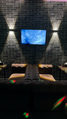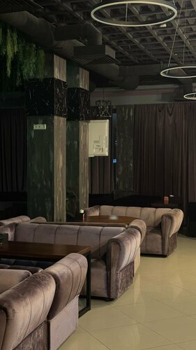 🏠 хороший кальян бар, диваны, кресла, большое пространство 🎶 есть караоке, удобное приложение в котором выбираешь песни 🍔 отличные закуски 👍🏻 свежие, хрустящие топ 🔝 🍸 приятные, красивые коктейли 👾 проходят квизы 👍🏻что супер для маленького города 🤵🏻 прекрасный молодой человек, общение 100 из 100, внимательный, позитивный ❤️❤️❤️