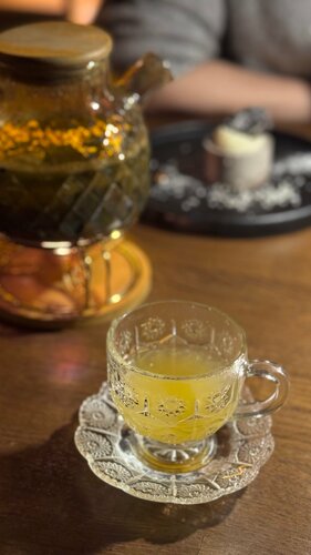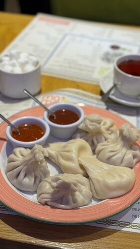 Вкусные хинкали и чай с клубникой, долго ждали, когда к нам подойдут, остальное все хорошо. Зайти попробовать хинкали 👌хорошая начинка, с вишней и творогом топ 🔝