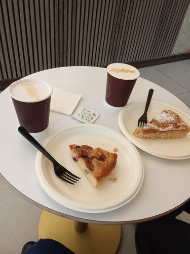 Очень понравилась кофейня. Уютно, красивые интерьеры, много посадочных мест на разный вкус, прохладно в помещении. Взял РАФ "Синабон". Очень вкусный сезонный напиток. Так же очень приятные детали - столик с раскрасками для детей, лавочка с мягкой подушкой у входа в кофейню, а так же - игрушки и лакомства для собак при входе (ни в одной кофейне больше такого не видел). Очень рекомендую и сам ещё буду проходить пробовать напитки.