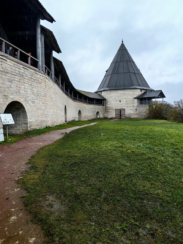 На территории крепости расположены четыре башни, в двух из которых есть небольшие музеи, на одной башне небольшая смотровая площадка, к четвертой башне свободного доступа нет. Также на территории есть две церкви. В одной небольшой музей, в другую вход закрыт (вроде на ремонте, реставрации, но не точно). Также остались руины от ранее стоявших зданий, построек. Территория в целом ухоженная, но тропинки в дождь превращаются в грязное мессиво, да ещё и скользко. Туристов в крепость привозят автобусами даже поздней осенью и даже в дождь. Место пользуется спросом у туристов. Рекомендую брать единый входной билет (400 рублей за одного взрослого, не такие и большие деньги, в целом оно того стоит).
