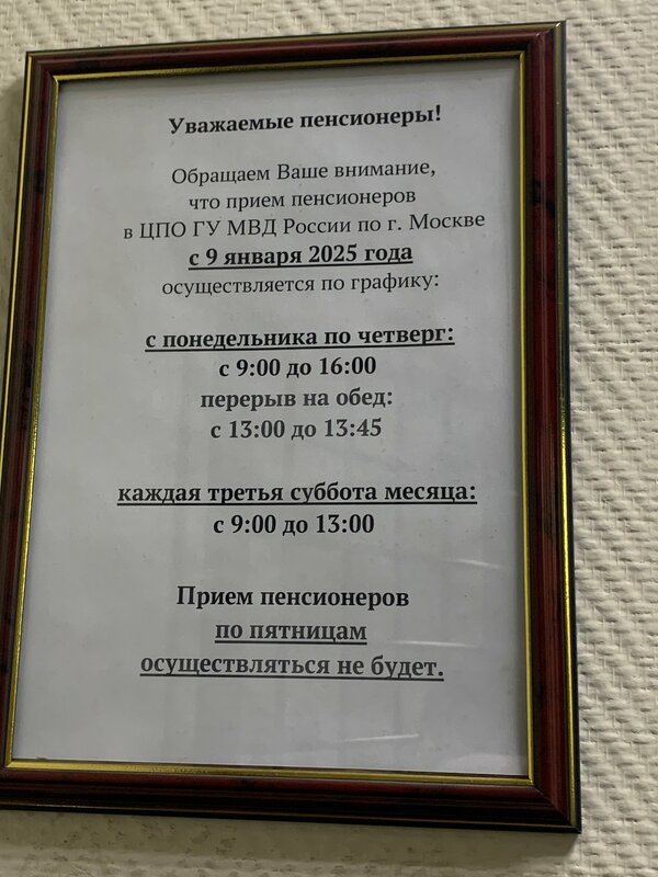 В пятницу приехал в отдел за справкой. Приема граждан нет. На сайте, по графику отдел работает до 15.00 час. На двери наклеен новый график работы. Со слов охраны, он действует с нового года. Напрасно потратил пол дня. Отвратительное отношение к пенсионерам.