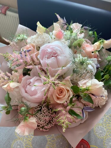 У Букетто есть свой стиль, и мне он очень нравится! Муж дарил несколько букетов из данной студии, и сегодня мне довелось побывать в этом месте. Там не только очень красивые качественные цветы, интересный ассортимент, но и такое приятное уютное место с подобранными деталями декора, все нежное и со вкусом. Флористы замечательно умеют сочетать цветы так, что букет выглядит как на картинах художников. Я рада, что есть такая цветочная студия, и что я ее знаю