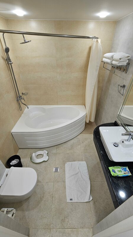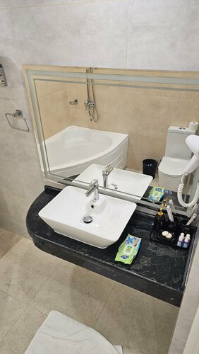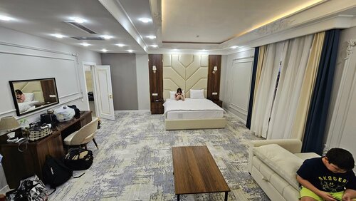 Мы молодая семья. Приехали на своем авто из Казахстана, г. Алматы 🇰🇿 40 лет. Семья. Двое детей. Жили в полулюкс. Родители в superior room. Гостиница свежая, ей нет и года. Удобное месторасположение. Отзывчивый персонал. Завтраки отличные. Наличие удобной авто парковки. 👌 Относительно недорогая цена (цена/качество). Просторные номера. Теплый пол в туалете. Отличный матрац, белоснежные полотенца и приятное постельное белье. 🥰 Имеется бесплатный бассейн, однако финская сауна и хамам оплачиваются отдельно. Мы её снимали $30/час. Рядом протекает река Сиаб с красивой прогулочной зоной (на нее выходит терраса гостиницы). 👍 До ключевых исторических мест Шахи-Зинда, Сиабский базар, Биби Ханум 3-5 мин на такси или 20 мин пешком. Рядом с гостиницей заправка ЛукОйл, турецкий ресторан Хан Ахмад и большой супермаркет оптовик.uz ❤️