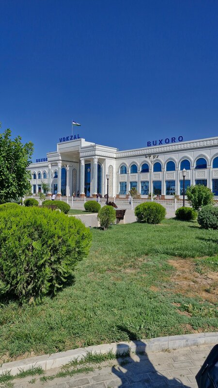 Современный красивый и чистый вокзал. Приехали сюда из Ташкента и отсюда же отправлялись в Бухару. Билеты покупали заранее онлайн. Красивая ухоженная территория парка рядом с вокзалом. Рядом общественный транспорт. Можно вызвать такси
