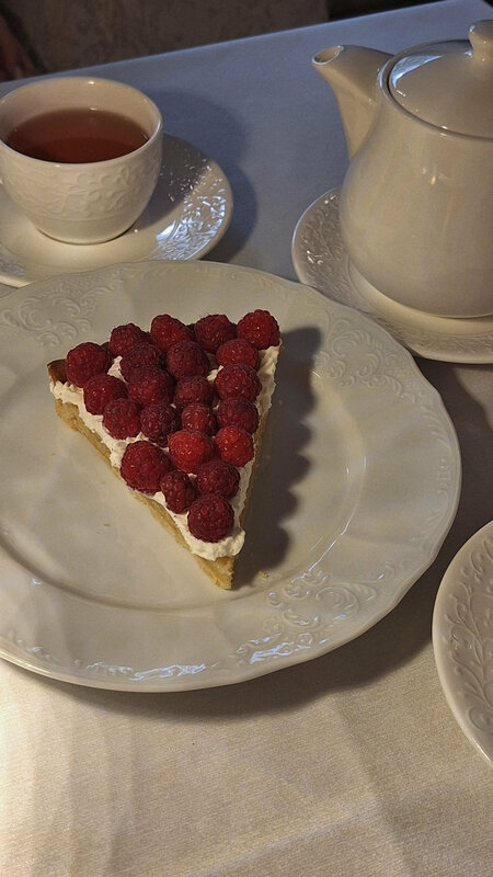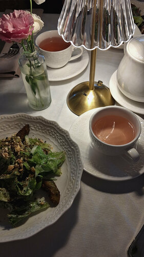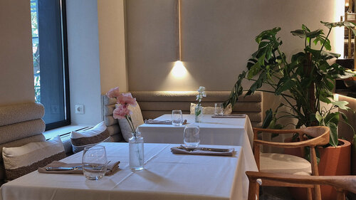 очень атмосферное и уютное место! небольшой ресторан и при этом стоящие рядом столики не мешают другдругу. брали салат с цыплёнком и авокадо (жареное авокадо было восхитительное), салат с ростбифом и ягодный тарт. десерт в меру сладкий, невероятно вкусный и красивый! это место идеально для тихих ужинов в компании близких людей🤍