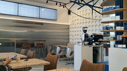 кофейня с интересным дизайном и с невероятно вкусными десертами. очень порадовало, что за декаф не нужно доплачивать как в других кофейнях. янки в самом 💙