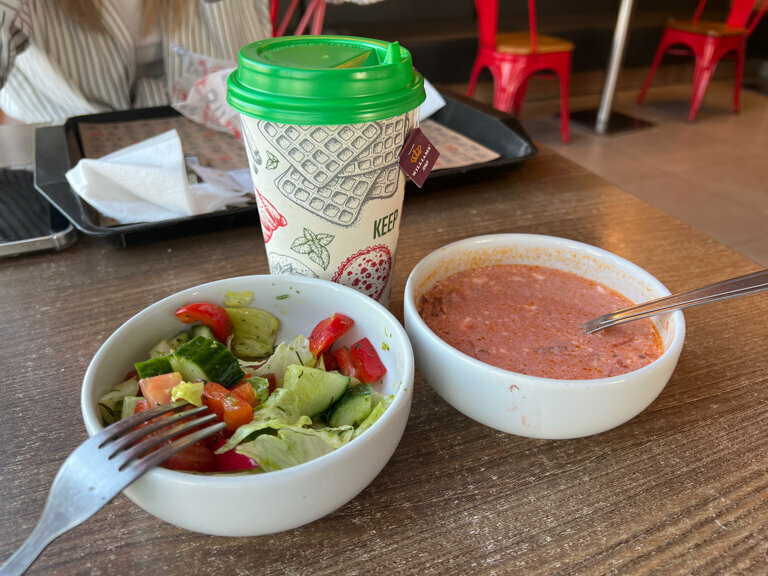 Заехали в кафе 17.06.23 , уютная домашняя обстановка с коврами и приготовлено все очень вкусно ПО ДОМАШНЕМУ И С ДУШОЙ , брал что-то похожее на шурпу , мясо очень нежно приготовлено было , и отбивную с картошкой еще бы пива шлифануть, но за рулем ) в общем остались довольны , такое ощущение будто к бабушке заехал в деревню и накормили ) цены очень достойные всем советую , ну конечно для тех кто зажрался от жизни ищите рестораны 😂