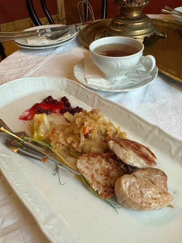 Очень антуражное кафе, сервис на уровне Пушкина, однозначно заслуживает внимания, особенно чай с самоваром 🔥 У этих ребят получилось создать отличную атмосферу, что дополняет весь Кремль, и другие экскурсионно-сувинирные заведения. Отдельное внимание здешнему меню, названия блюд это отдельная история. Все достопримечательности в 15 минутах. Место которое производит пока лучшее впечатление, среди местных кафе. Лучше записываться заранее, а точнее прийти или позвонить и забронировать стол.