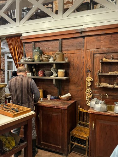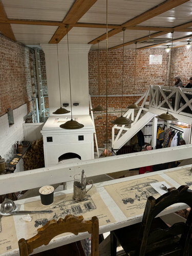 Приятное место, в стиле деревенского кирпичного дома, очень приятные экскурсоводы. Это место, в первую очередь, музей. Со старыми сервантами, историческими инструментами, а также отличный пример лофт-интерьера. В лавке на вынос 🥨 все моментально раскупают, кроме коломенских калачей, советую уточнять наличие и когда что будет. В закатном окне тоже все быстро разбирают.