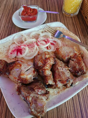 Хорошее кафе, разнообразное меню, обслуживание зависит от смены (иногда с нотками небрежности), мясо на мангале великолепно. Заказывала греческий салат, курицу и свинину на мангале. Ради такого мяса можно и нотки небрежности в обслуживании простить. Заказы приносят достаточно быстро, в заведении всегда есть посетители.