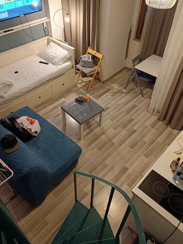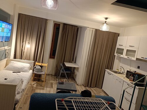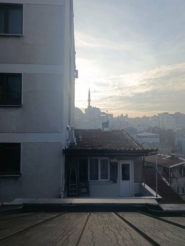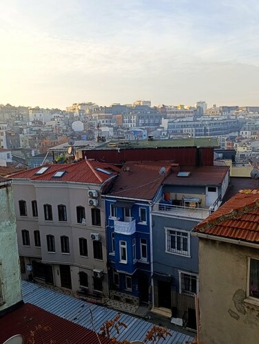 Хорошее расположение отеля недалеко от площади Таксим, но в тихом переулке, шума с улицы нет, с утра слышно чаек. Рядом есть магазины, Мигрос, кафе и обменники. У нас был двухуровневый номер с двумя санузлами, кухней, стиралкой и посудомойкой. На троих было очень комфортно. Номер был чистый к нашему приезду, кровати застелены. Да, мебель немного уставшая, но терпимо. Сантехника вся работала, был гель для душа, шампунь, порошок для стирки. В общем коридоре можно взять сушилку для белья, утюг и пылесос. Вай фай работал, с телевизором мы не разобрались, но он нам был и не нужен. Отель соответствует фото и по цене-качеству это хорошее предложение. Рекомендую 👍