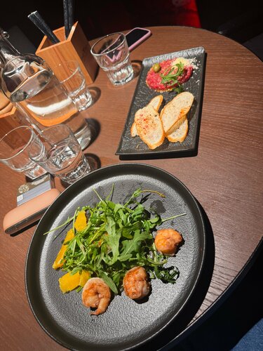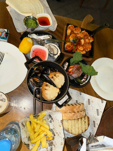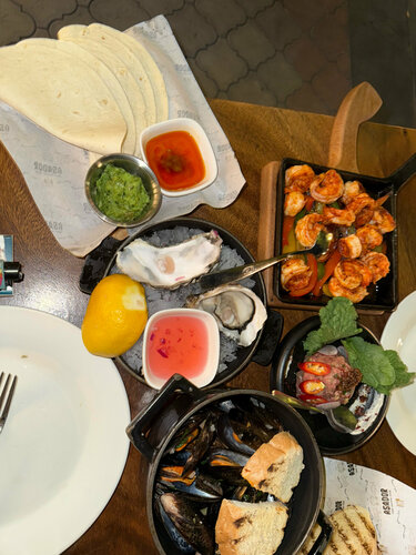 Не вкусно, полное разочарование от блюд. Тартар недосоленный, мидии сухие и неудачный соус, понравилось только креветки фахитос, но и это блюдо не принесло никакого удовольствия ибо было очень жирным. Обслуживание неплохое. Но кухня полный отстой.