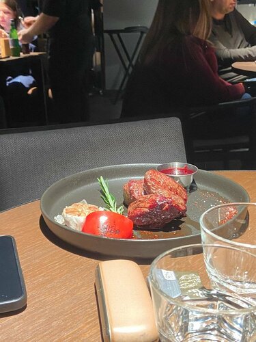 Ресторан оставил неплохое впечатление. Блюда очень вкусные! Всё свежее, ароматное. Пробовали несколько позиций из меню, и всё понравилось. Но вот обслуживание не порадовало: заказ ждали долго, а официанты были немного холодные, без улыбки. В целом, место хорошее, особенно ради еды.
