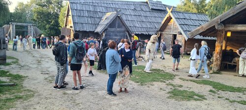 В этом году посетили это место второй раз с детьми. Наша подруга сказала что в этот раз будет фееричное вечернее представление и мы ринулись из Зеленоградска. На такси до места ехать буквально 30 минут (про обратно в конце расскажу). Мы с детьми были в прошлом году и они на перебой рассказывали моей супруге что тут где и как. Когда же увидели что квест с рунами ещё "на месте" побежали скорей искать их. Словом, эмоций куча, попадаешь буквально в темные времена и ловишь себя на мысли что очень странно когда тебе люди отвечают на русском языке) антураж места подмывает найти толмача и общаться полужестами с людьми что ты встркчаешь :) В селении собрано куча разных ремесленников, торговцев, я уже не говорю о кузнеце и прекрасных харчевнях. Цены умеренные и не вводят в обморочные состояния когда озвучивают прайс на тот или иной предмет или услуги (можно сказать разумный туристический максимум :)). И вот стемнело и на разных площадках началось огненное шоу! Это восторг. Ради этого стоит ехать и из центральной част, и из Сибири и откуда угодно. Актеры супер молодцы! Танцовщицы и танцоры ну прям профи и от фотографировагия никто не чурается. Надеюсь по фото видео буде понятно почему сложилось твое мнение. И вот представление закончилось и нужно собираться домой. Время около 11 и, по ощущениям, все выбирает вокруг. Заказать такси (Яндекс или Максим) практически не возможно. Время ожидания от 30 минут и в лёгкую могут отказать узнав что у вас аж 2 дете. Без претензий у самому месту, просто хочу отметить что нудно заранее продумать "пути отхода", поскольку с транспортом не все гладко и в 11 часов дети буквально будут у вас спать на руках (ну мои прям отрубились букалаьно у нас на руках). Итого: место супер. Ехать надо. И дневные и ночные мероприятия "огонь" ;) Всем Кауп!
