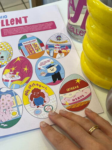 Замечательное место! Очень приятные официанты - несмотря на полную посадку успевают быстро и качественно выполнить свою работу и уделить внимание. Мне быстро принесли мою еду, было очень вкусно и сытно. У них очень вкусное какао. Сам интерьер яркий и лаконичный, уютно и стильно, на столе всегда есть бутылка воды.