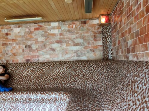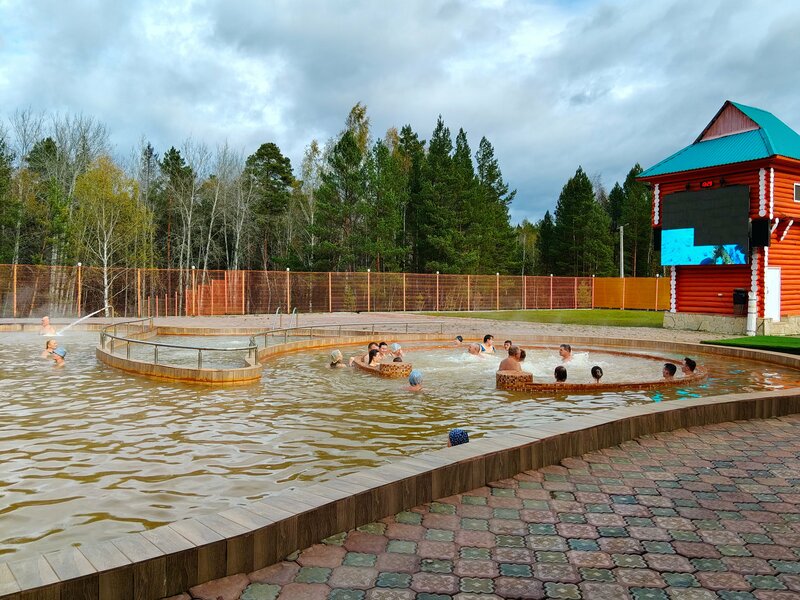 Ездили с экскурсионной группой по рекомендации друзей. Реальность даже превзошла ожидания, мы были в восторге! Прекрасный сауна-парк, шесть саун, тёплые бассейны с минеральной водой, детский и под открытым небом, различные гидромассажи, аквааэробика, доброе отношение персонала, вкусная и недорогая столовая, чистые раздевалки и душевые, наличие нескольких фенов, можно арендовать домики. Прекрасное место для отдыха как с друзьями, так и с детьми. Пять часов пролетели незаметно! Один, пожалуй, минус - был скользкий пол в бассейне, но это уже так)). Обязательно посетите это место, не пожалеете точно!