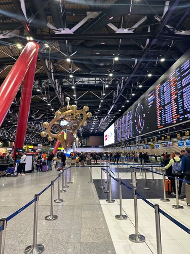 Хороший, достаточно удобный аэропорт, но сейчас усложнилась логистика при вылете. И также, на входе в аэропорт бывают довольно большие очереди.