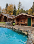 Приятная баня, прорубь. Горячей воды мало, мытья невозможно.